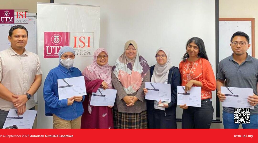 We are thrilled to share the successful completion of our AutoCAD Essentials Training, held from 2-4 September 2025 at Institut Sultan Iskandar, Universiti Teknologi Malaysia Kuala Lumpur. This intensive 3-day program saw an enthusiastic group of 6 participants eager to master the fundamentals of AutoCAD.