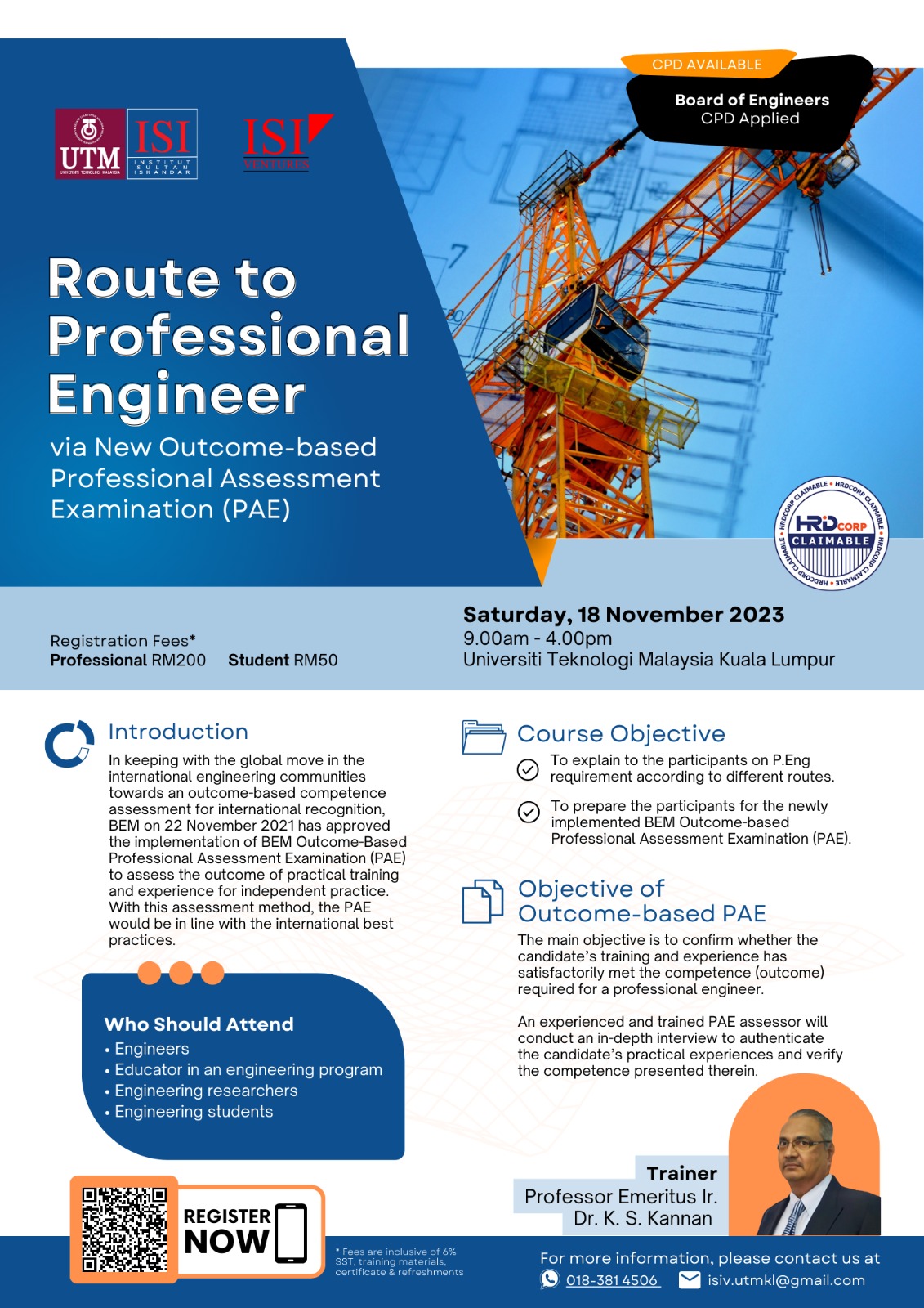 Inย keeping with the global move in the international engineering communities towards an outcome-based competence assessment for international recognition, BEM on 22.11.2021 has approved the implementation of BEM Outcome-Based Professional Assessment Examination (PAE) to assess the outcome of practical training and experience for independent practice. With this assessment method, the PAE would be in line with the international best practices.