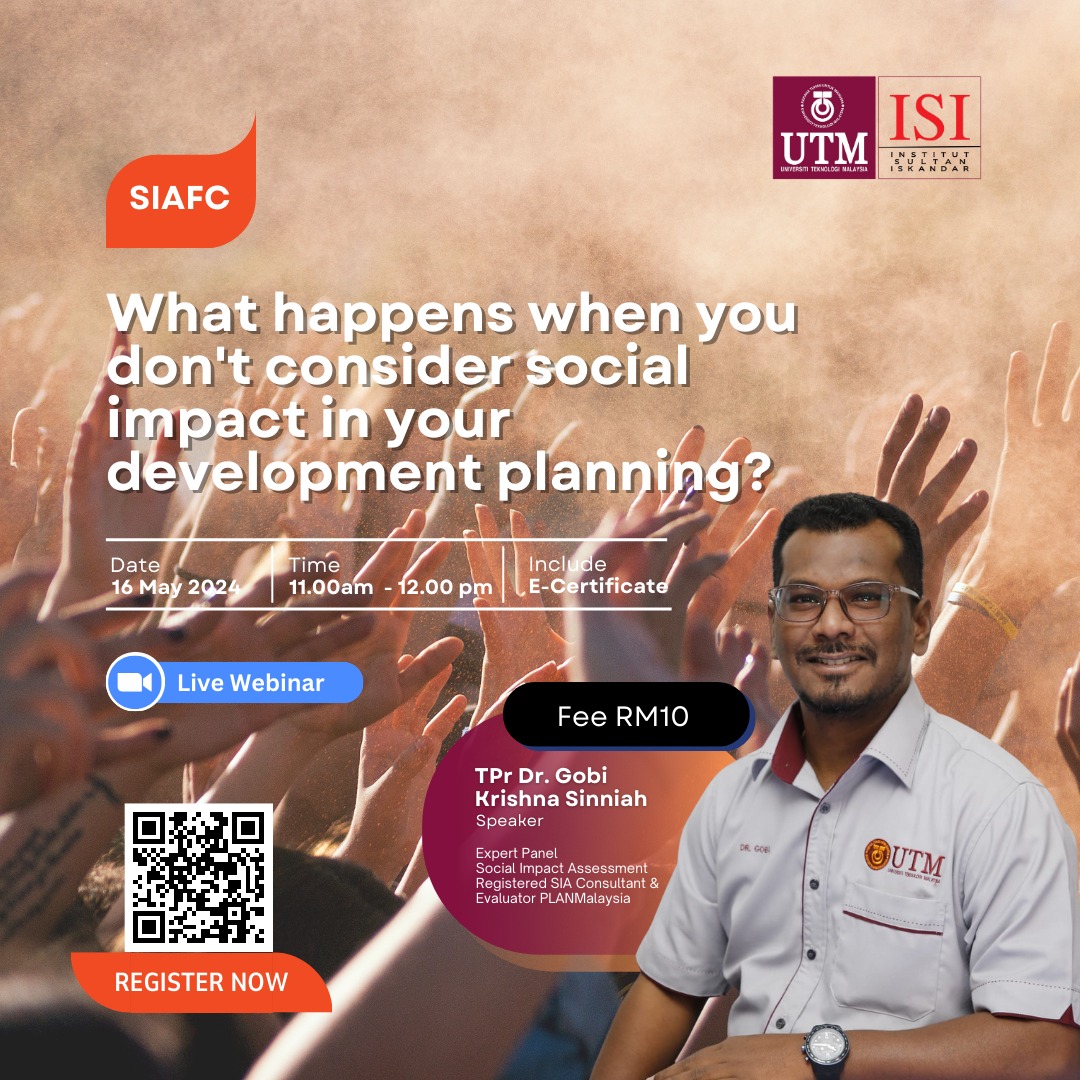 Meet our distinguished speaker, TPr Dr. Gobi Krishna Sinniah, Expert Panel on Social Impact Assessment (MIP).