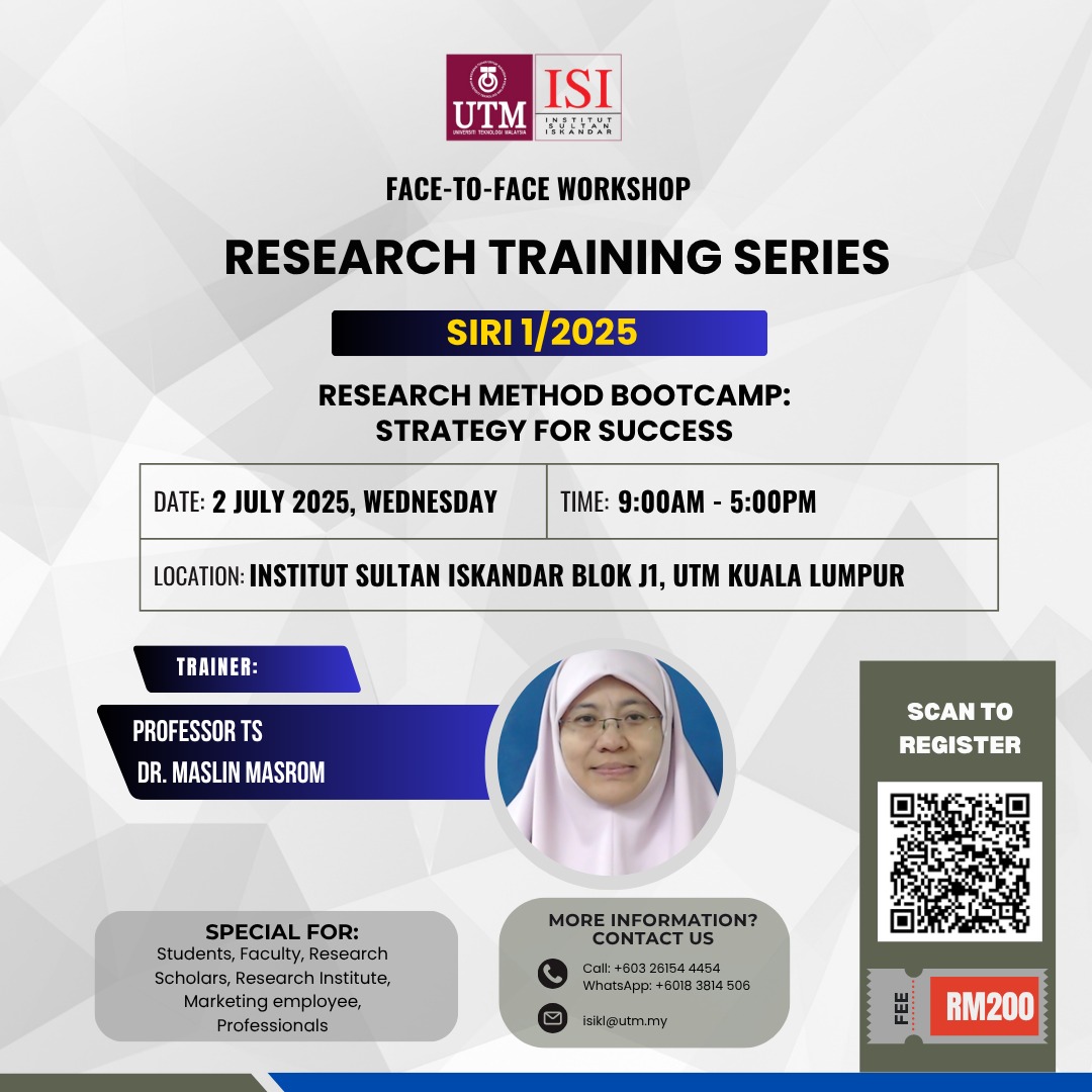 UTM Kuala Lumpur Kuala LumpurRESEARCH TRAINING SERIES 1/2025! Boost your research skills in our Research Method Bootcamp: Strategy for Success, organized by Institut Sultan Iskandar (ISI), UTM Kuala Lumpur! ๐ Date: 2 July 2025 […]