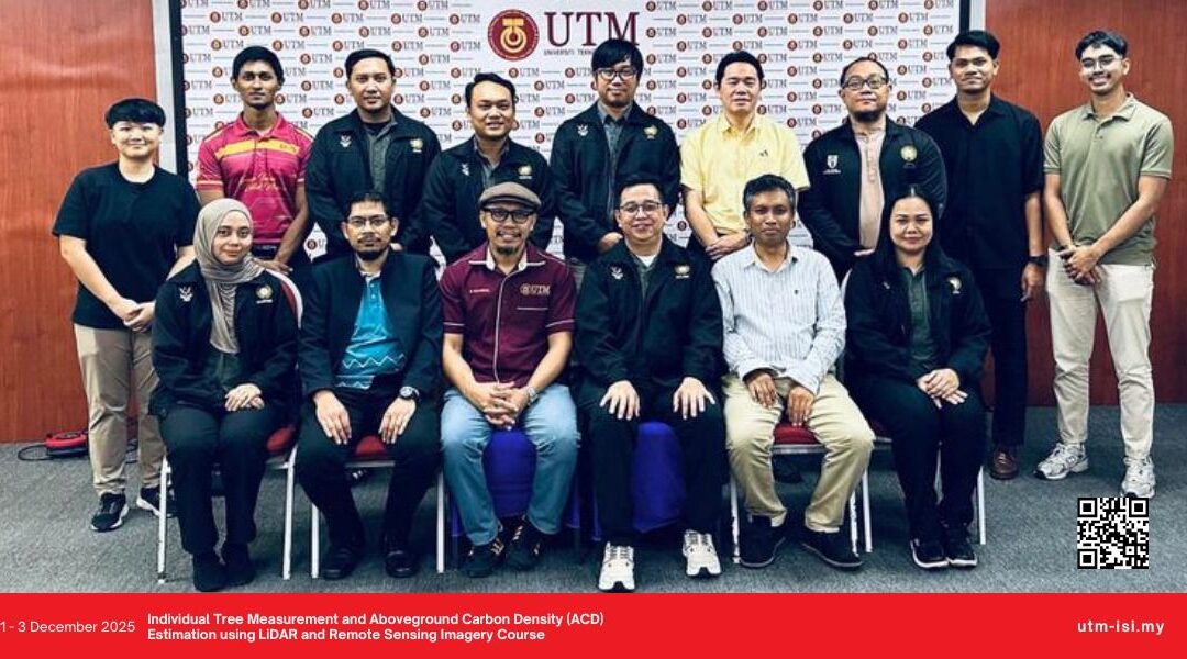 From 1-3 December 2025, the Individual Tree Measurement and Aboveground Carbon Density (ACD) Estimation using LiDAR and Remote Sensing Imagery Course was successfully held at Faculty of Built Environment and Surveying, Universiti Teknologi Malaysia Johor Bahru with participants from Forest Department Sarawak.